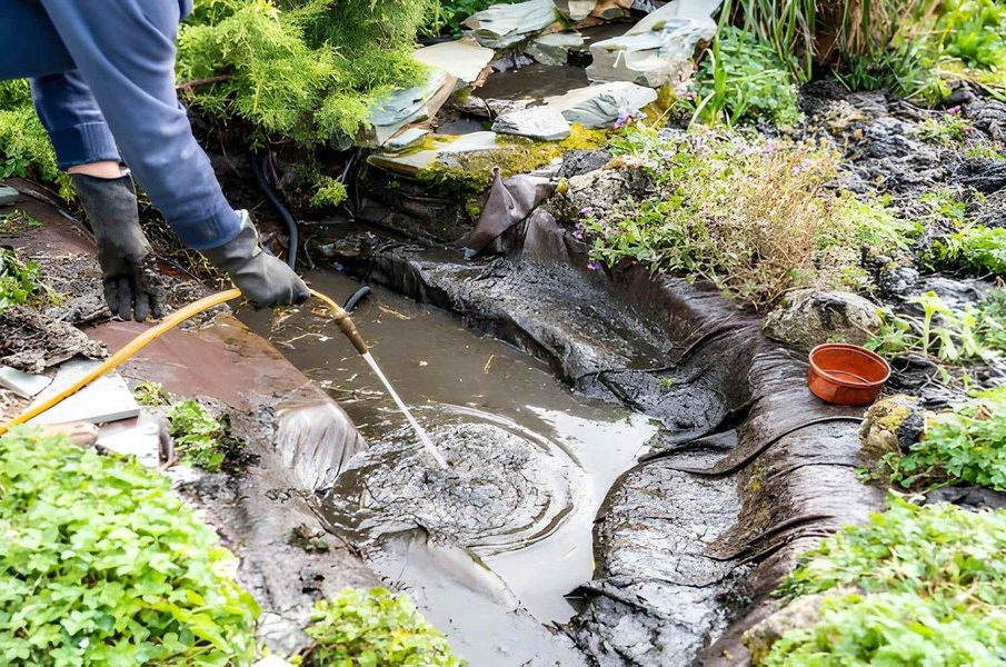 - Drain the pond completely